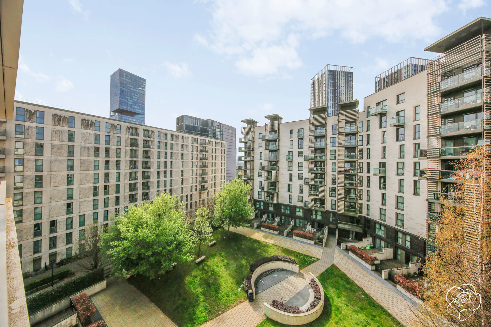 The property gets exposure to the afternoon sun whilst overlooking the private podium gardens of this stylish, Scandi themed building plot, with the locally adored Mirabelle Gardens just behind; whose name comes from a variety of plums and boasts trees of the same, hosts swings, a children's' play area, impromptu yoga patch, dog walking path- the list goes on.