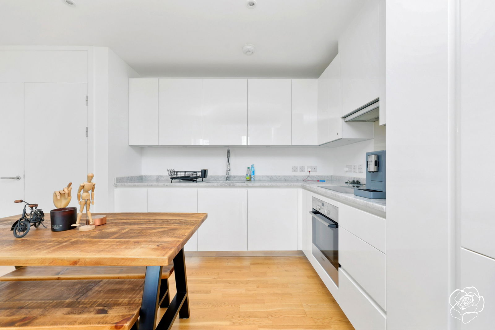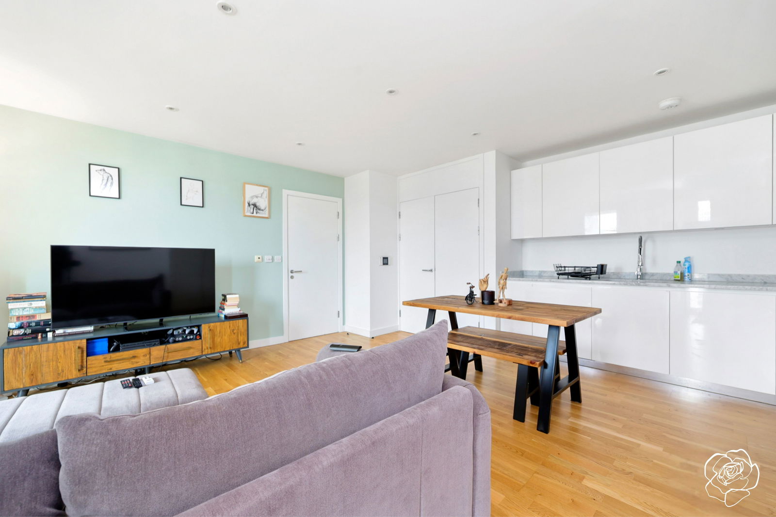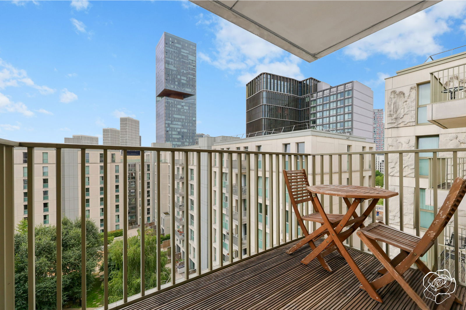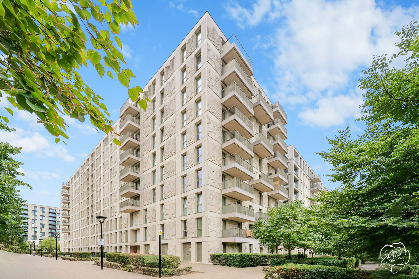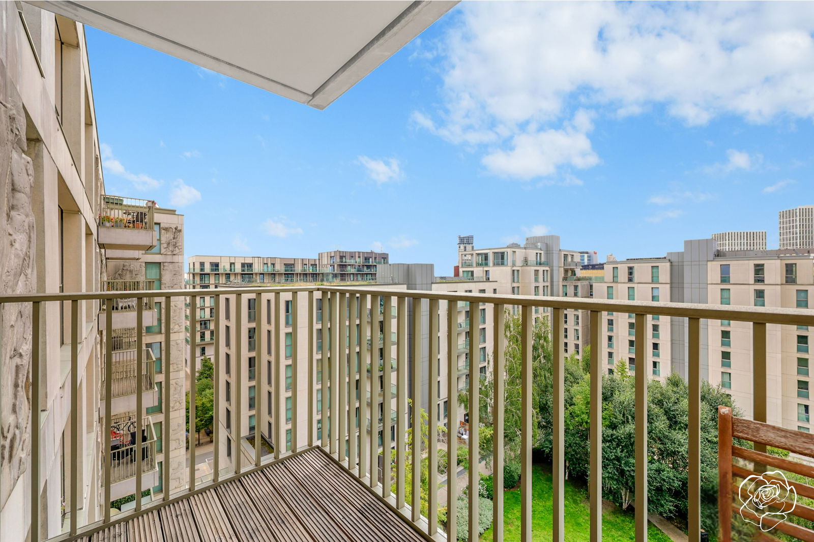 With a bird’s eye view of the resident’s private internal courtyard and parts of the Stratford Skyline from the highest sheltered balcony in the building; from the eighth of nine floors, Alexander Rose Estates presents Saddlers House, E20.