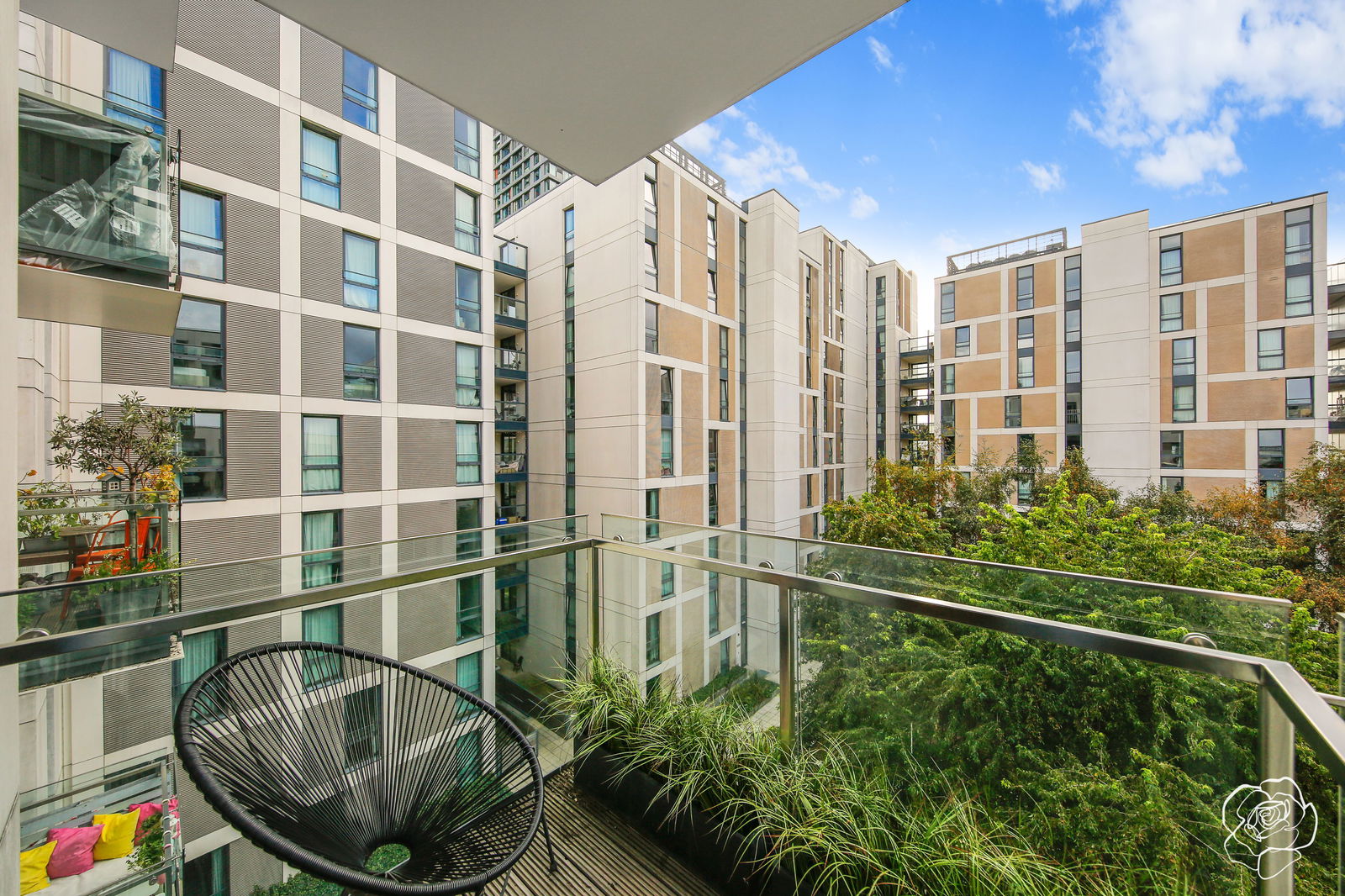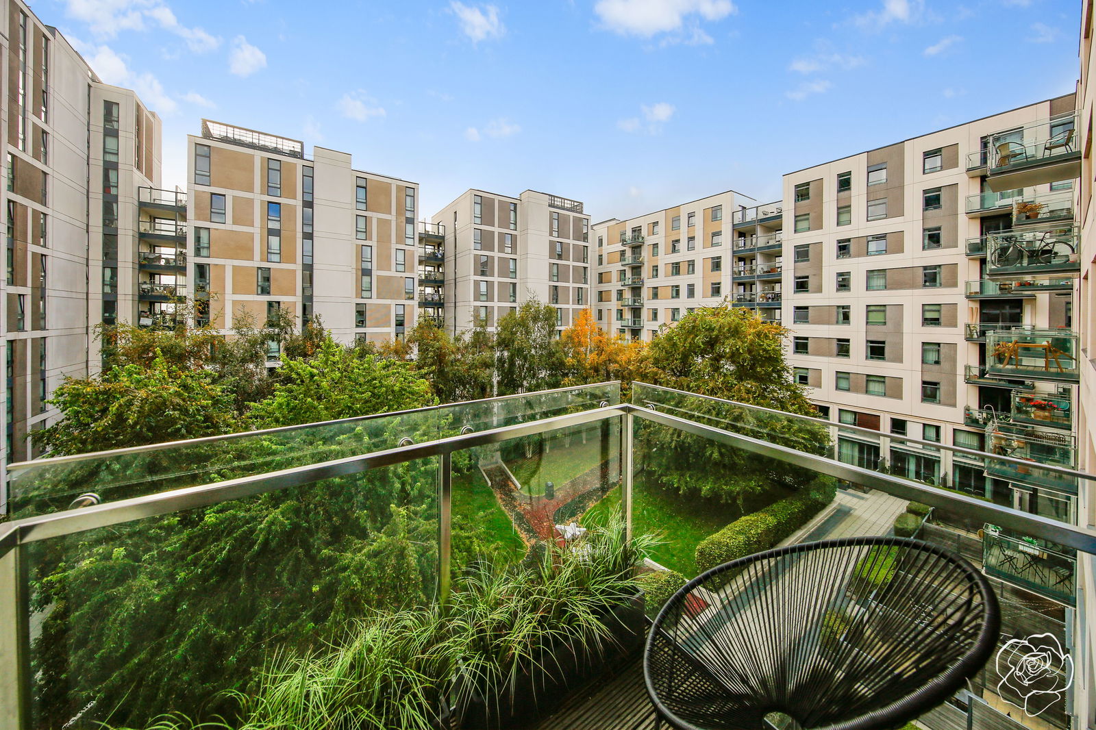 On the fifth of seven floors, natural light runs freely through the 764sqft floorplan via a South West facing aspect. The balcony overlooks the private raised podium gardens, and fun fact; the spacing between the balconies was deliberately intended by the buildings’ architect, to afford privacy, without the feeling of being overlooked.