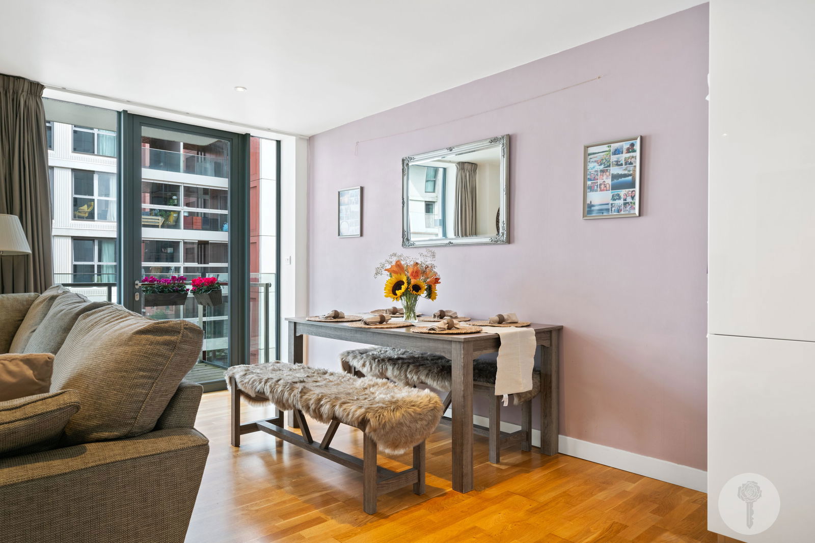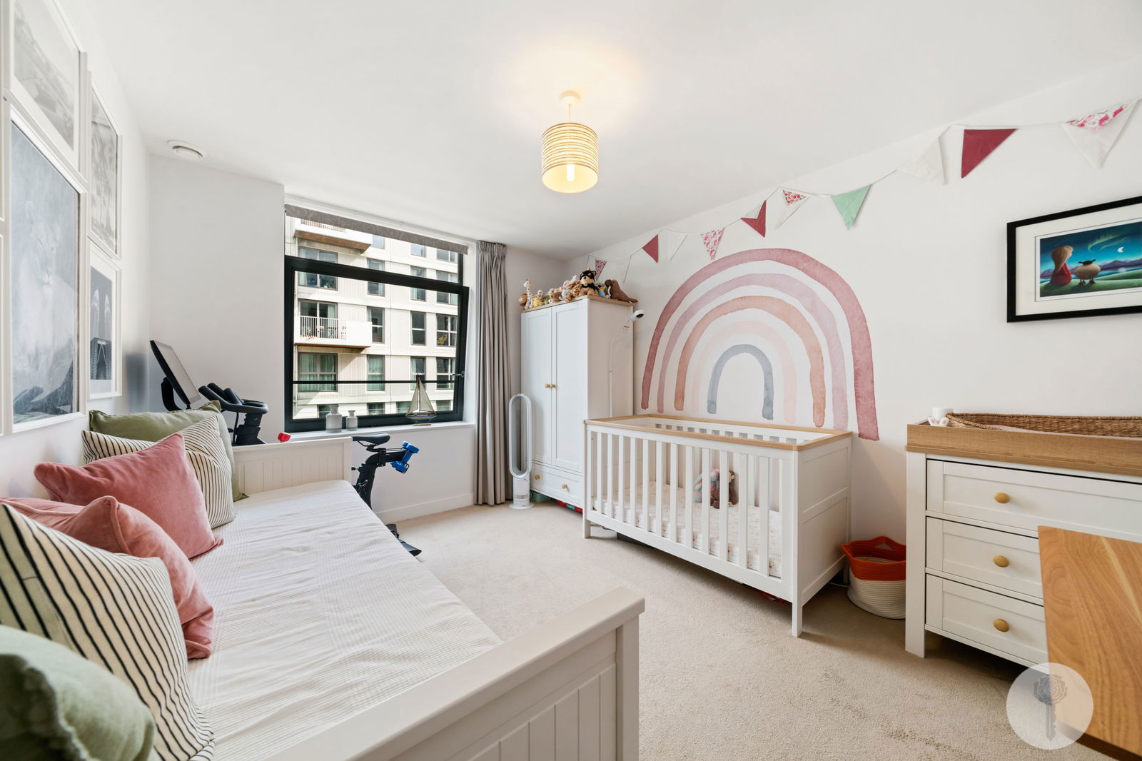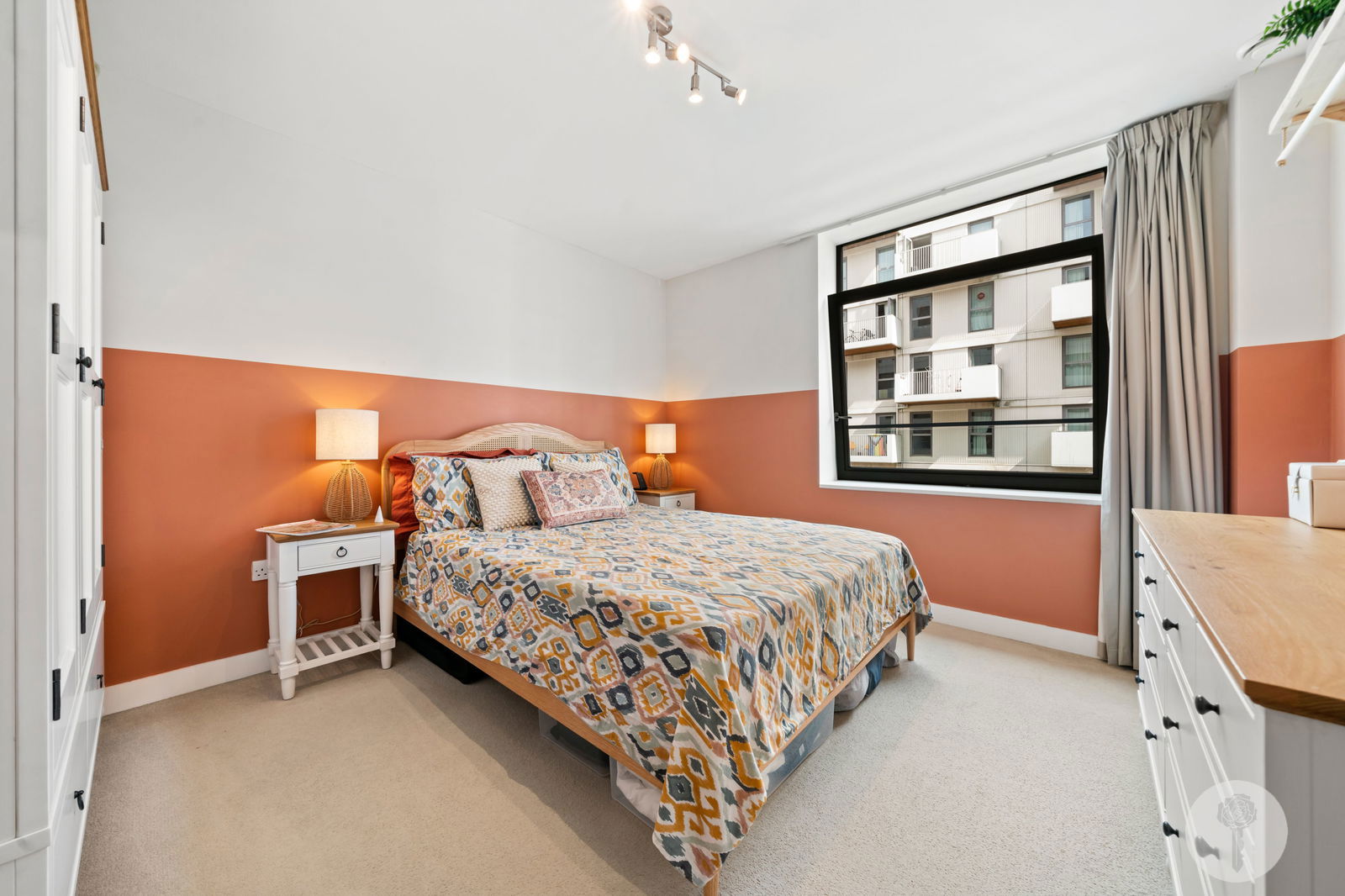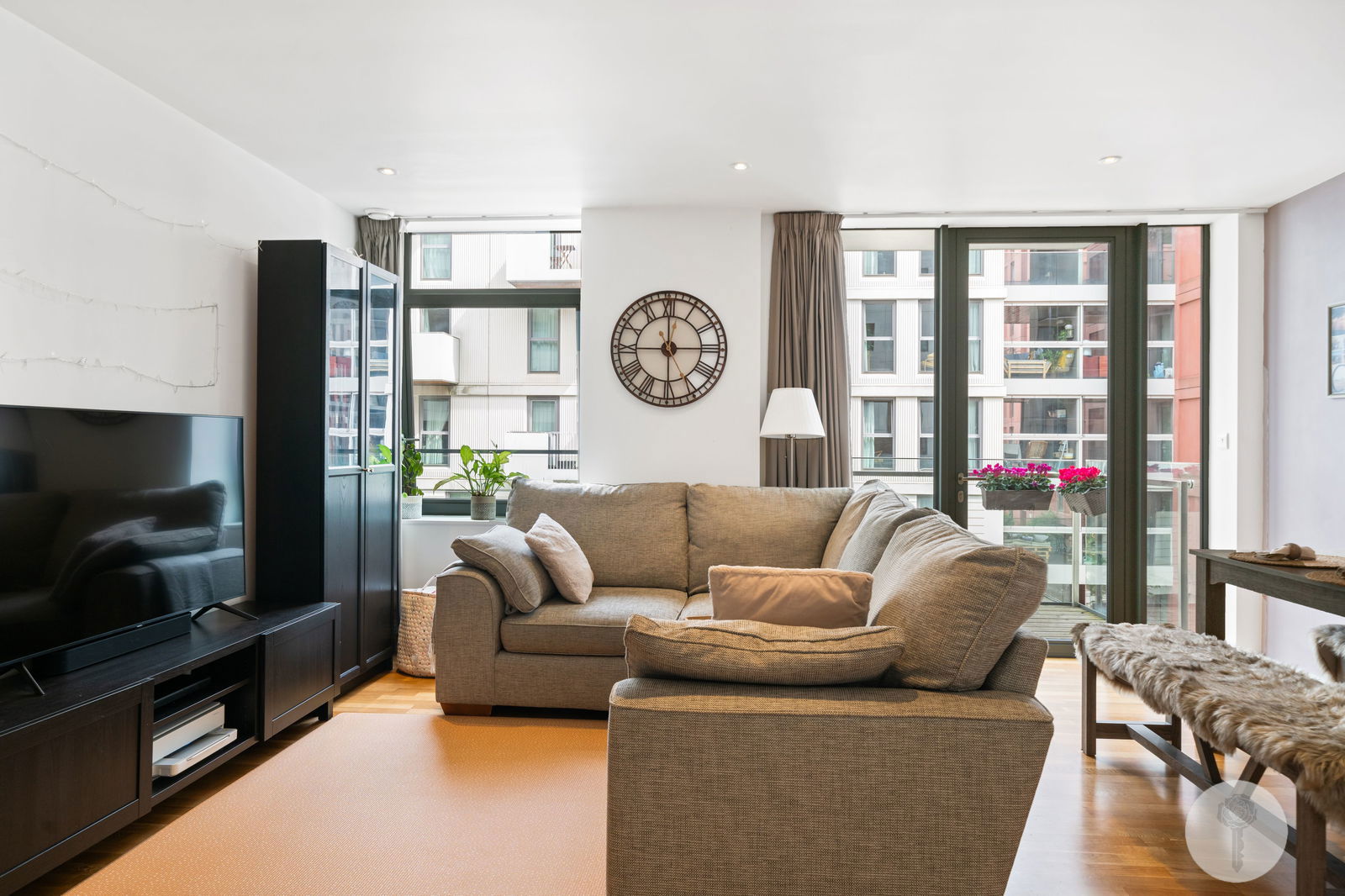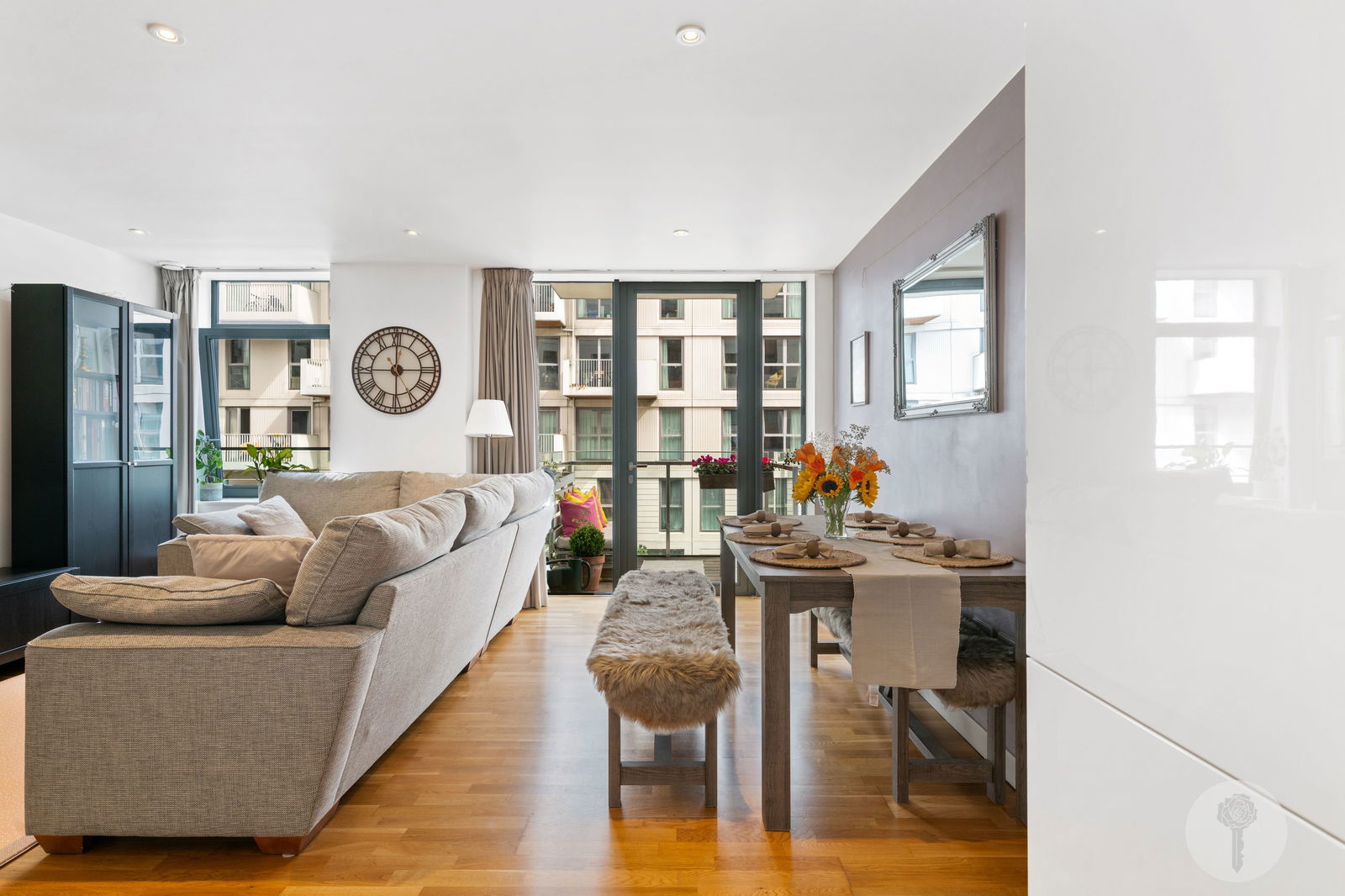 Spanning 791sq ft, with all windows facing East, natural light runs freely through the liveable spaces, adding to the sense of light and space which continues on into the evening, thanks to a complimentary Farrow and Ball colour palette. Positioned on the third of seven floors, the East facing balcony offers a glimpse of The Portlands to one direction, and on the topic of balconies, the spacing between them was deliberately intended by the buildings’ architect, to afford privacy, without the feeling of being overlooked.