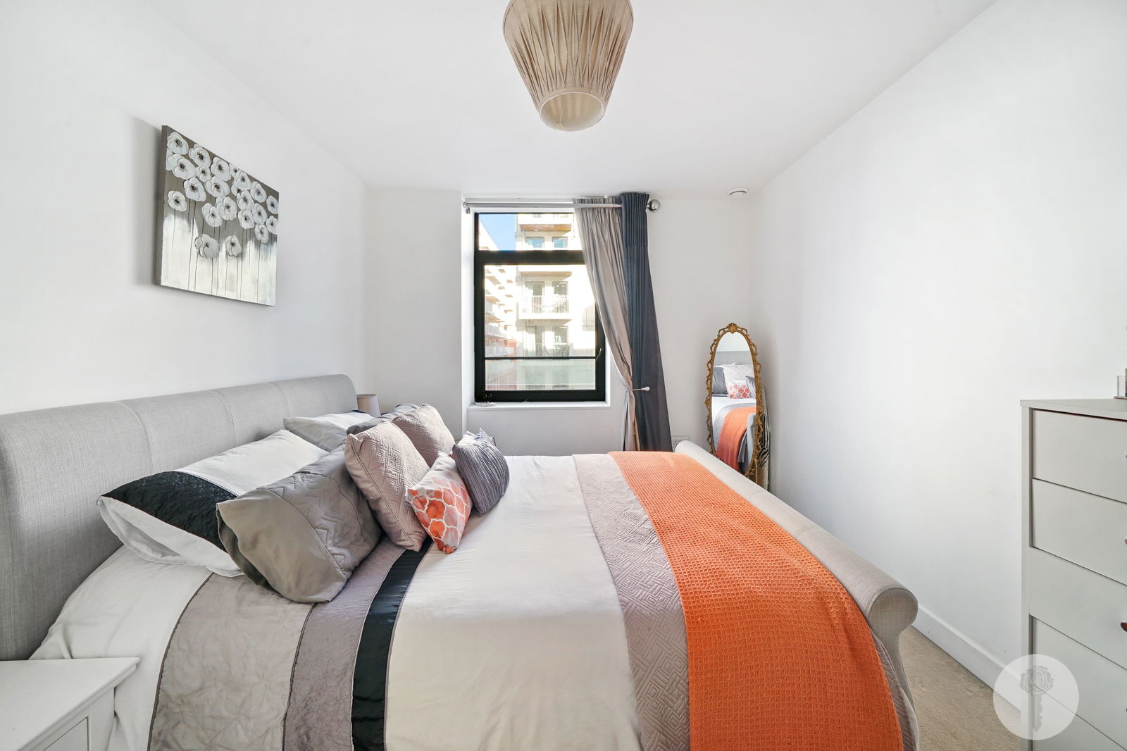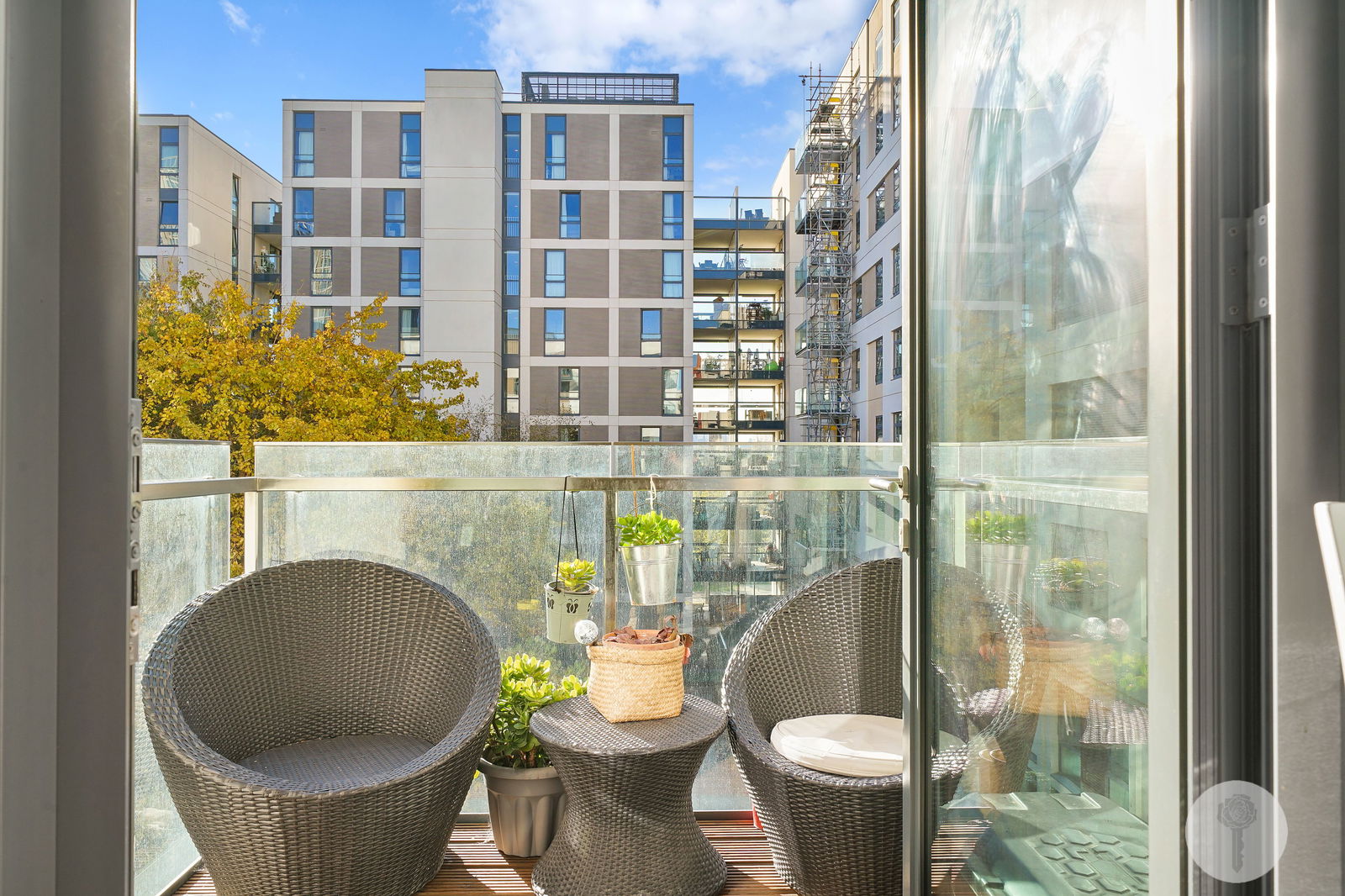 On the fourth of seven floors, natural light runs freely through the liveable spaces via it's dual aspect. A West facing balcony overlooks the private raised podium gardens, which not only sit atop the undercroft parking (available to rent via separate negotiation), but offers an additional space for children to play, indulging in that latest bestseller, or simply a change of scenery.