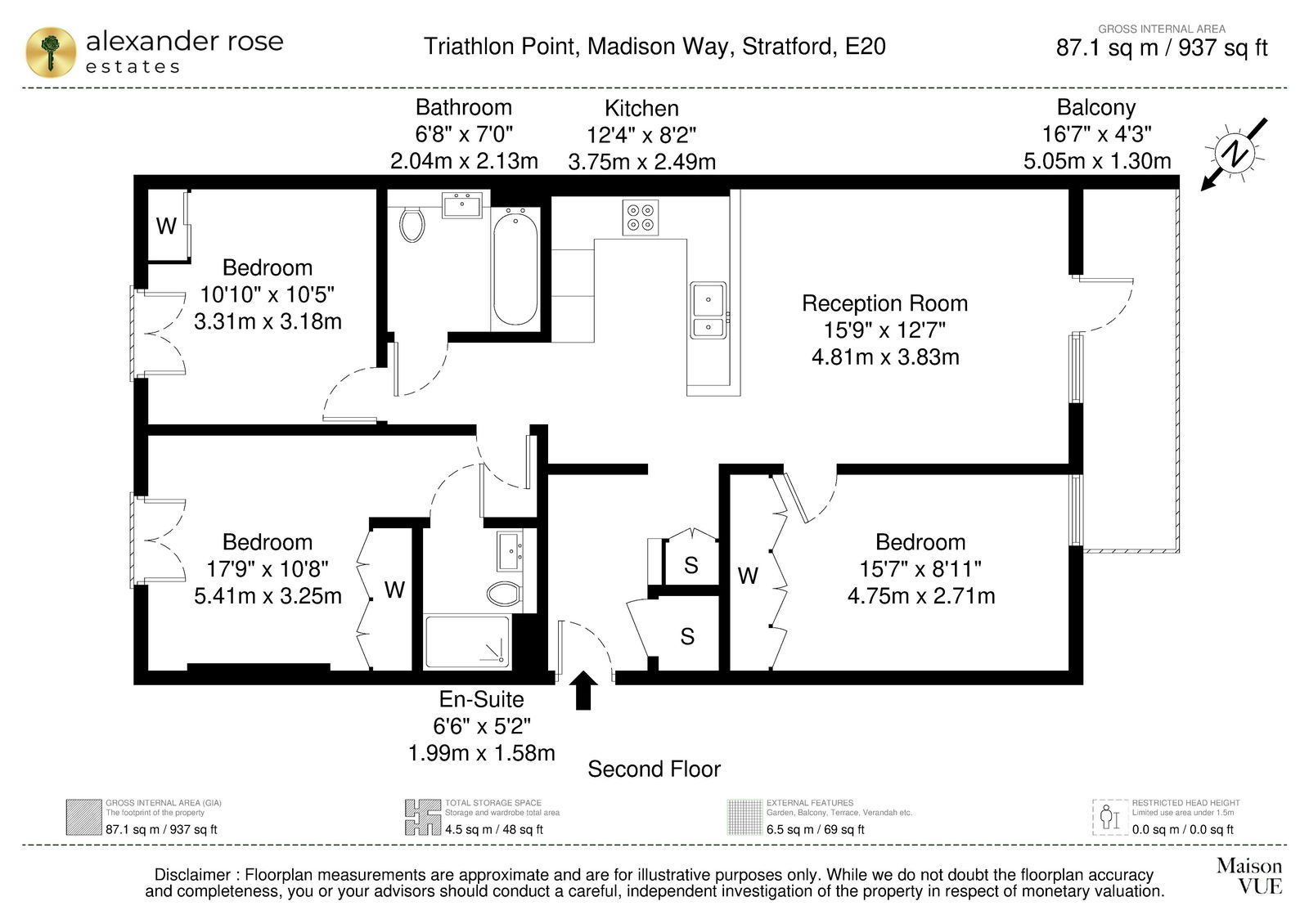 Bespoke, recessed lighting continues into the living space and creates an inviting ambience, before leading out onto the lengthy SW facing balcony that overlooks the private courtyard, whilst also providing a glimpse of the Olympic Park. Sharing the same aspect - the first of three bedrooms offers a full length built in wardrobe (5 doors), custom light fittings and wooden floors that continue throughout. On the other side of the apartment, the premiere bedroom offers a fully tiled en suite bathroom with walk in shower, plus more custom lighting and fitted wardrobes. French doors and Juliette balconies bring the outside in in both bedrooms on the North Eastern side, and variable underfloor heating allows for different heating zones throughout.