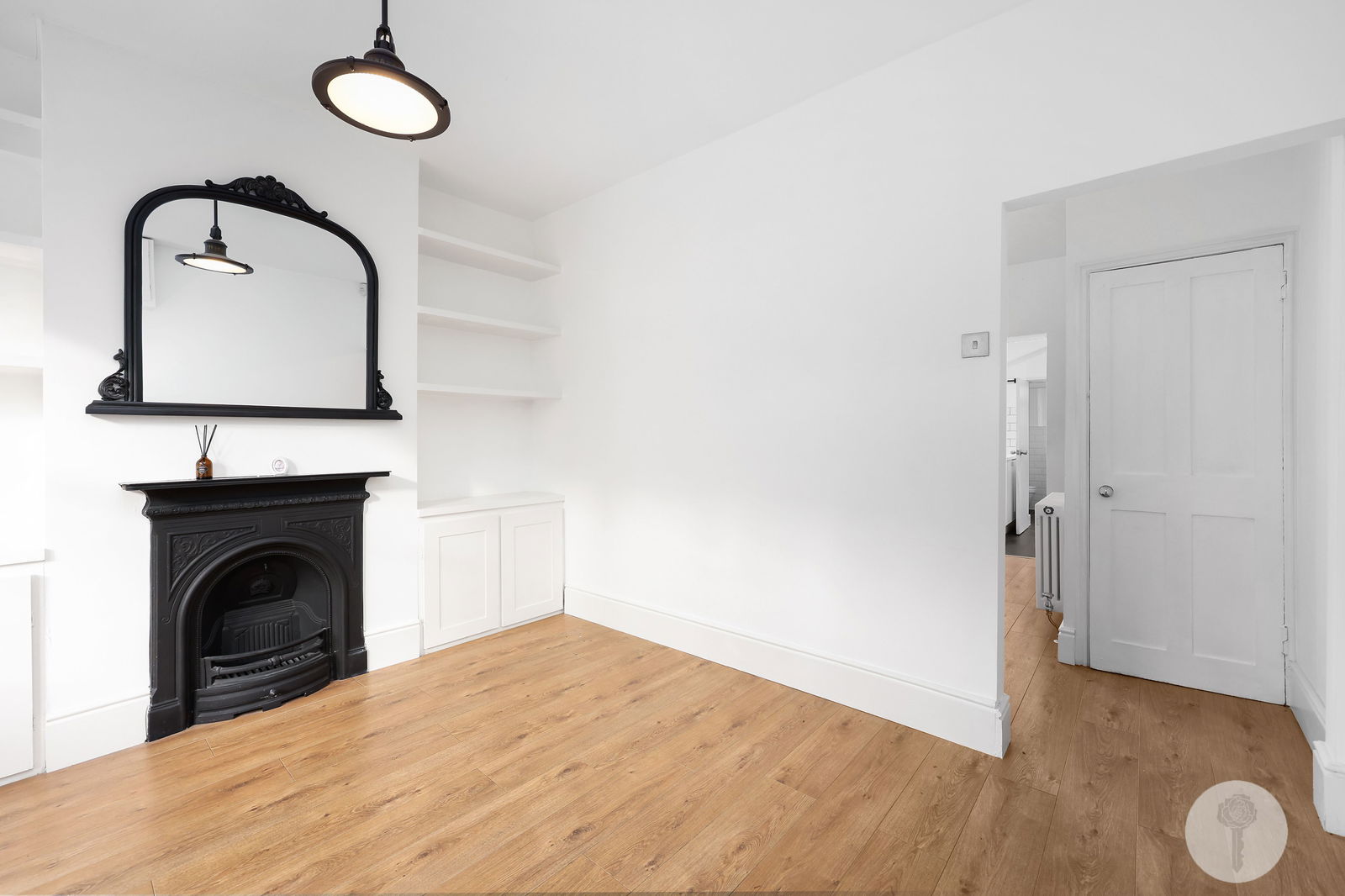 Available for immediate occupation, this charming two bedroom house is available unfurnished, and has been tastefully upgraded by the landlord across its 615sqft floorplan, to include a modern galley kitchen with gas hobs and skylights, a fully tiled bathroom complete with rainfall shower and heated towel rail,- all while maintaining some of the property's original features, such as a bay window to the front - welcoming in sunlight from a SW aspect - and an original fireplace (non useable).